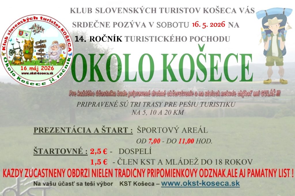 Účastnícky poplatok: cestovné pre členov KST Košeca zabezpečuje organizátor
